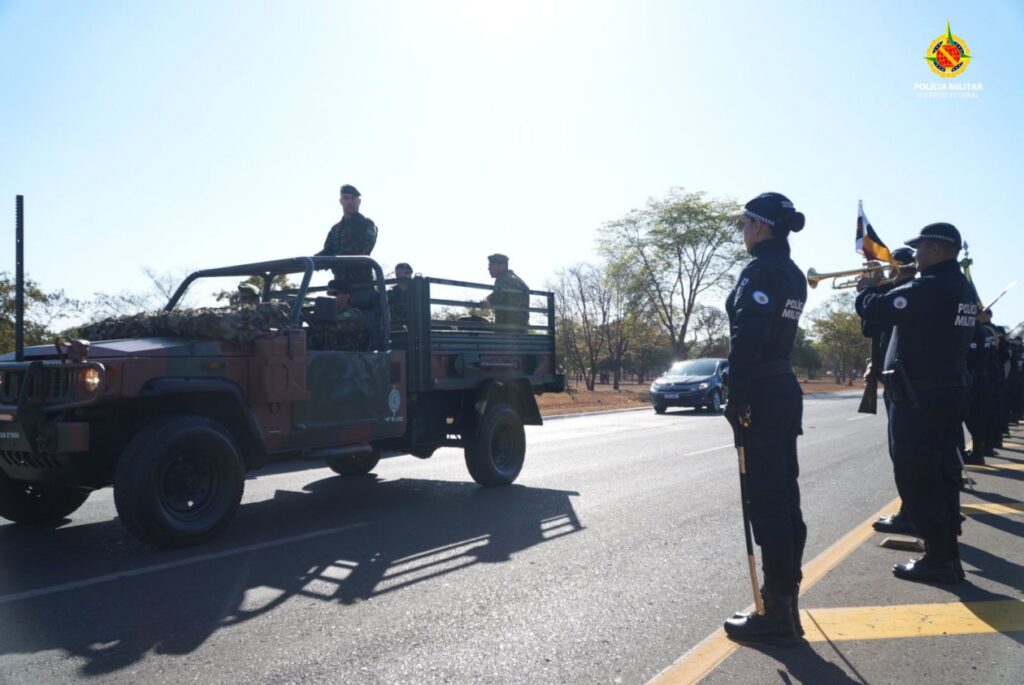 Além da segurança dos presentes, os policiais militares também participaram do desfile, equipes de área e grupos táticos marcharam pela avenida N1 acompanhados da Comandante-Geral da PMDF, coronel Ana Paula Barros Habka, e do Subcomandante-Geral, coronel Fabrício Boechat de Camargos.